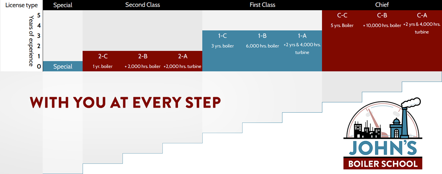 John’s Boiler School is always there no matter where you are on your career trajectory. Our classes are paired with prep materials and sample exams to match your next licensure exam.